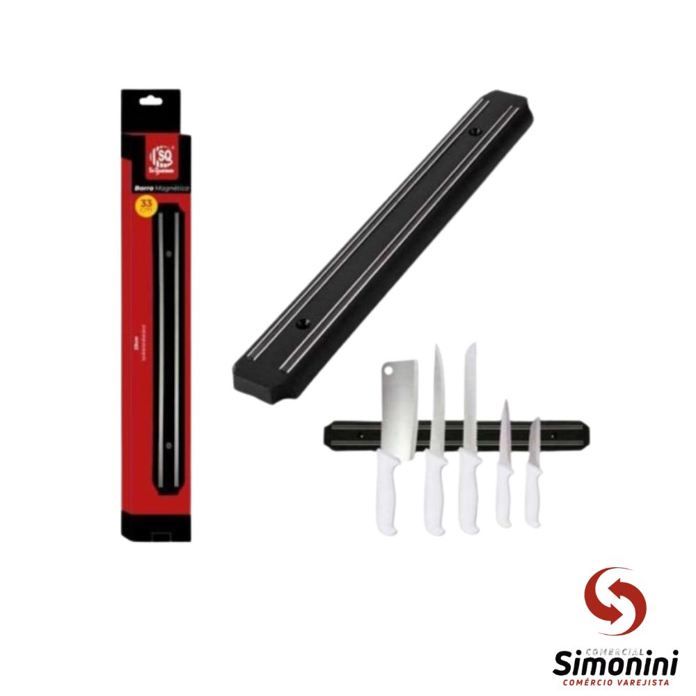 Organização prática e eficiente para o seu dia a dia A Barra Magnética 33cm é a solução ideal para manter seus utensílios metálicos organizados, acessíveis e em segurança. Com design moderno, acabamento discreto e alta durabilidade, ela pode ser utilizada em cozinhas, oficinas, escritórios e outros ambientes.Especificações:Comprimento: 33 cmAltura: 1,5 cmLargura: 5 cmCor: Preta com detalhes metálicosMaterial: Plástico resistente com trilhas magnéticas em açoFixação: Instalação com furos guia e parafusosCapacidade: Suporta facas, tesouras, espátulas e outros utensílios metálicosVantagens do produto:Ímã de alta potência que garante fixação firmeOcupa pouco espaço e mantém o ambiente organizadoCompatível com diversos tipos de utensíliosPode ser instalada em cozinhas, áreas gourmet, oficinas, entre outros locaisConteúdo da embalagem:1 barra magnética de 33 cm2