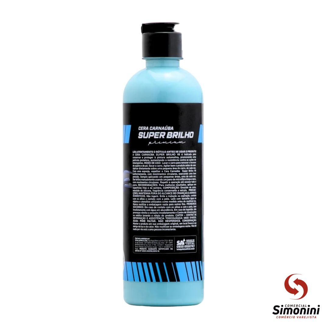 Escolha a cera de carnaúba V8 Super Brilho para um acabamento profissional e duradouro.