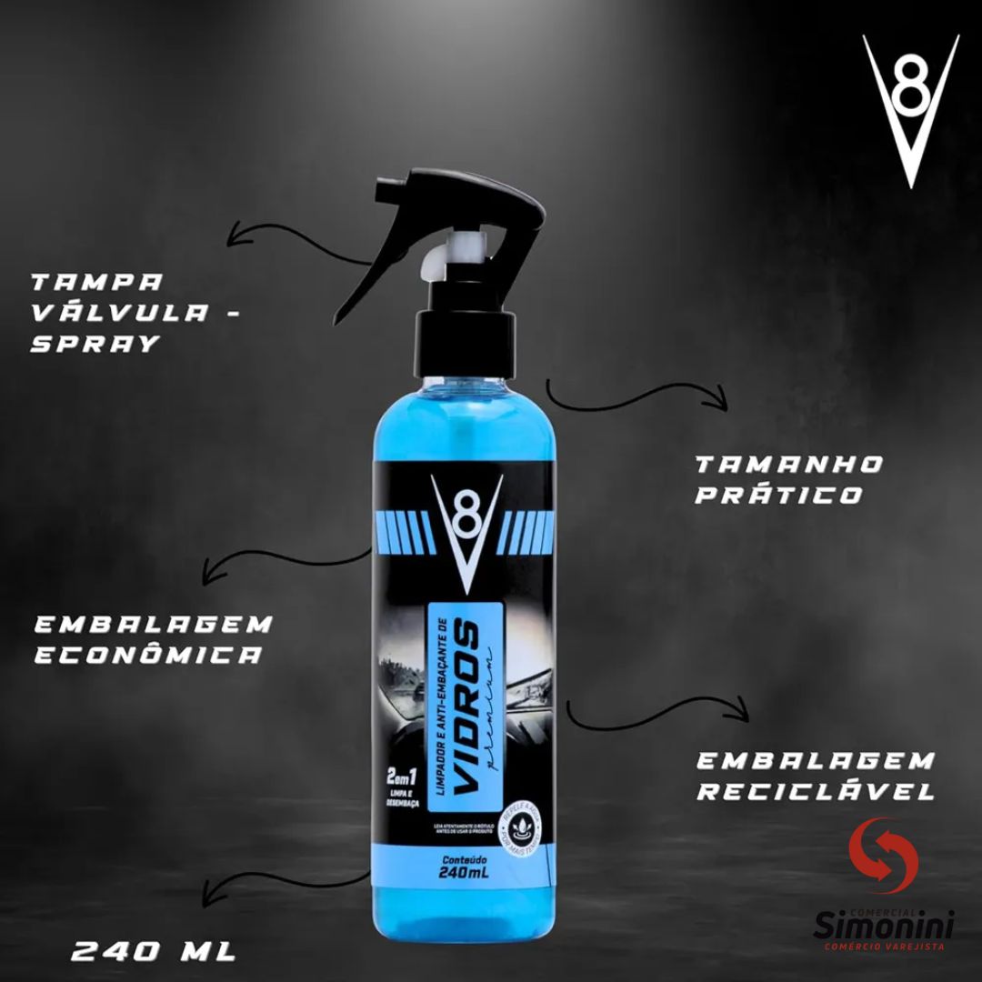 O Limpador de Vidros Automotivo V8 é a escolha ideal para manter a visibilidade do seu veículo sempre impecável. Com uma fórmula avançada que remove sujeiras, manchas e resíduos, este limpador proporciona uma visão clara e nítida, essencial para uma condução segura. A tecnologia anti embaçante evita o embaçamento dos vidros em todas as condições climáticas, garantindo visibilidade perfeita, especialmente em dias chuvosos e frios.
